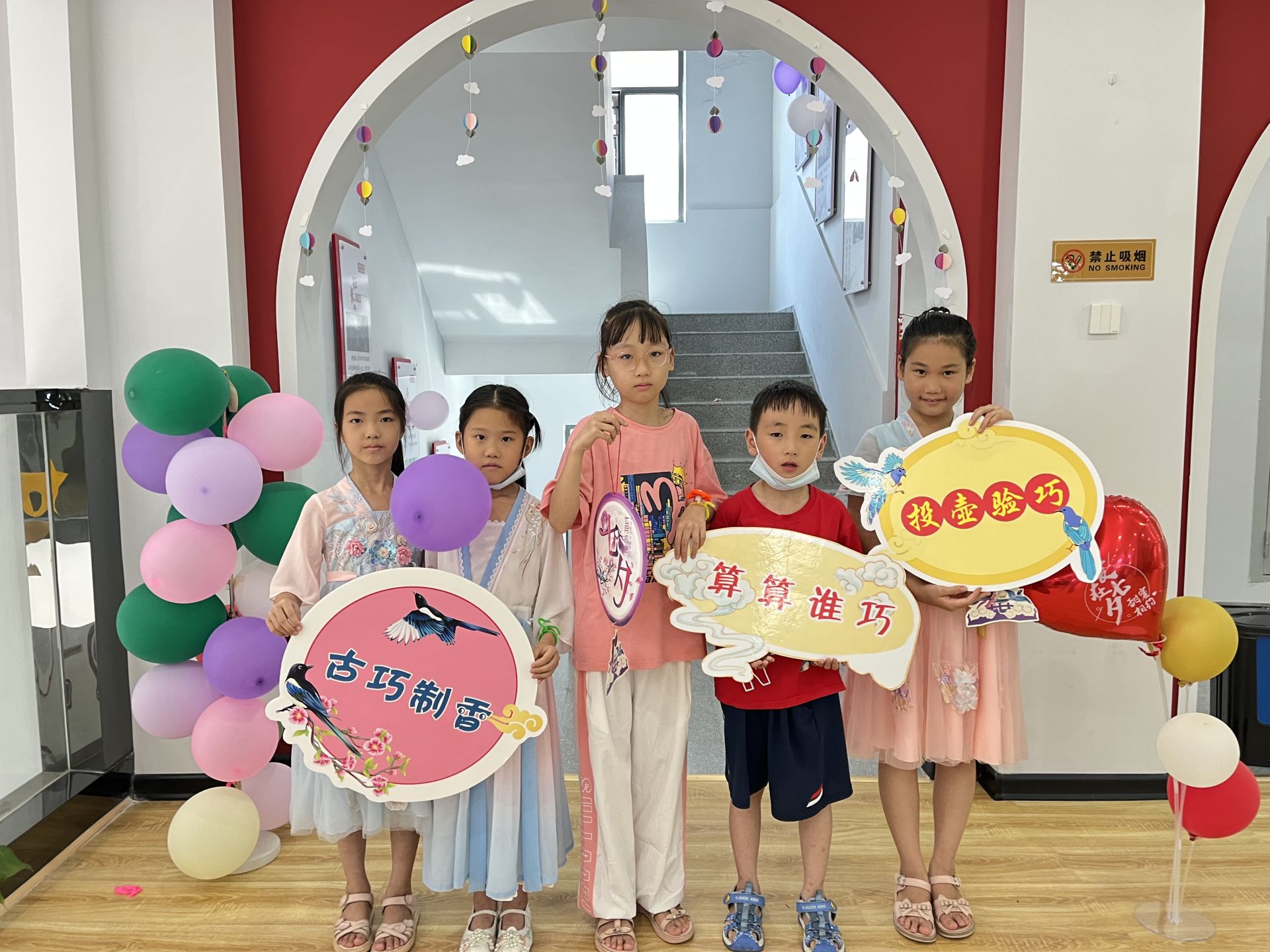 通过“古巧制香、喜珠斗巧、扭花赛巧、投壶验巧、算算谁巧”五个活动环节,结合制香、投壶、串珠等手工活动,将君子六艺中的“射”、“数”融入到生动有趣的游戏中,每完成一个环节可采集认证印章,让青少年儿童体验传统技艺,充分感受到古典文化知识的魅力。
