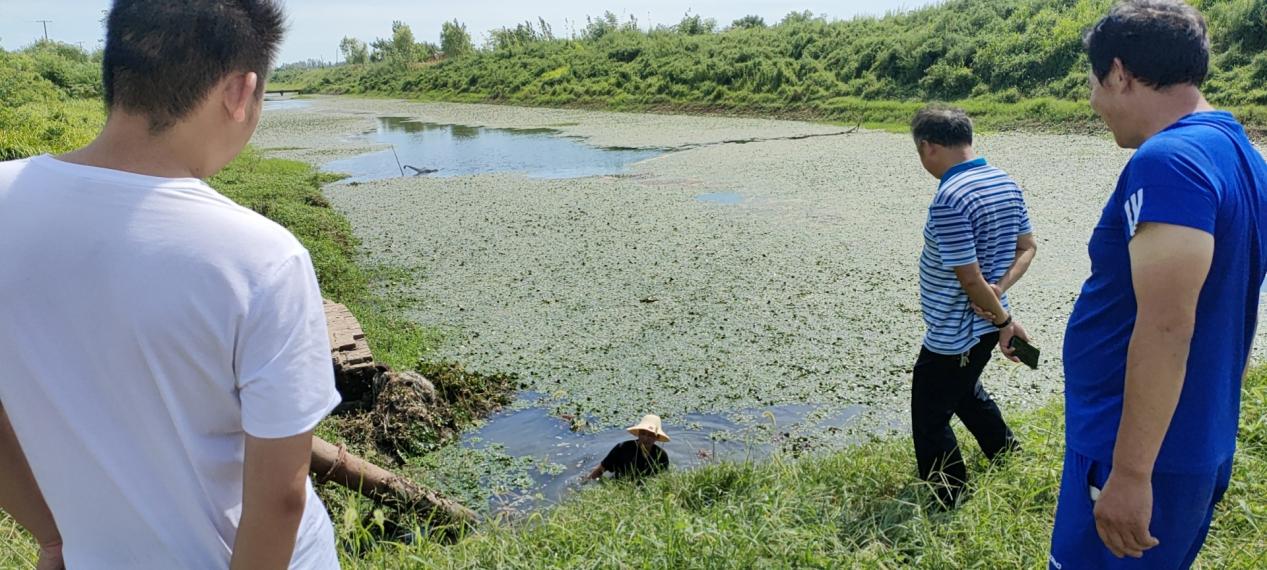 “我水性好,我下去,你们都不要下来。”团结村书记奋不顾身跳下水中,顺着管道走势,伸进水中摸索着清理管道口。“管道被淤泥、树叶、垃圾等杂物堵住了,只能一点点挖出来。”就这样,村书记一边稳住身形,一边一次次地伸进管道里挖出杂物,终于将管道口疏通,并将管道口上漂浮的杂草、水葫芦等清理干净,消除隐患。
