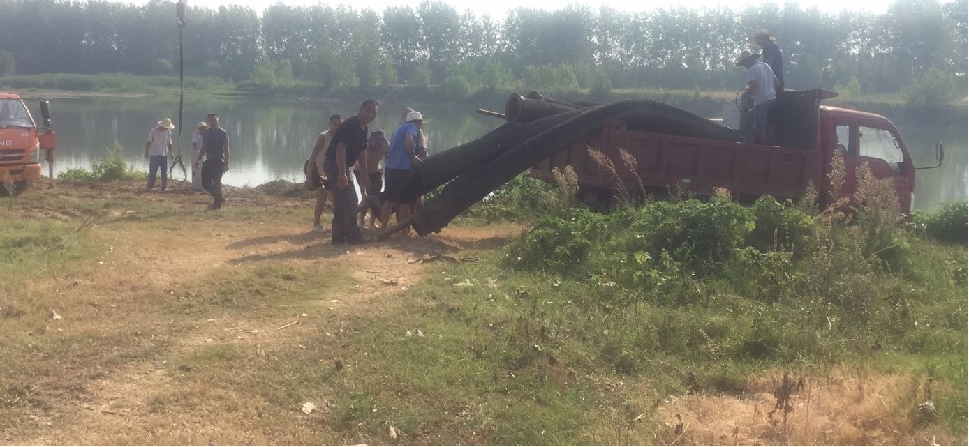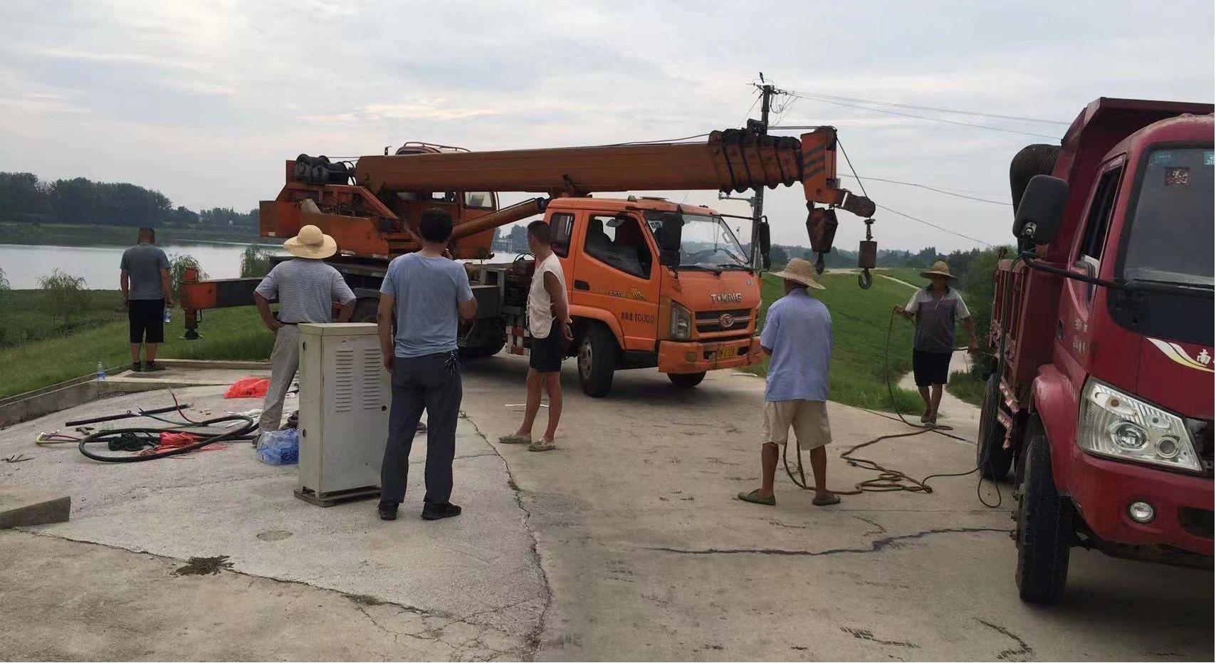 旱情不等人,方案确定后,陡岗镇立即组织施工。8月16日,在竹林湾剅处架设一台35KW水泵;17日,在东砦剅处架设一台22KW水泵;18日,在永新闸处架设两台总容量74KW的水泵,连续三天紧急架设三处取水设备,源源不断地将澴河水引入镇内水系,再通过镇内贯通的沟渠输送到各个塘堰、田间,可解决镇内2万余亩水稻等农作物用水问题。