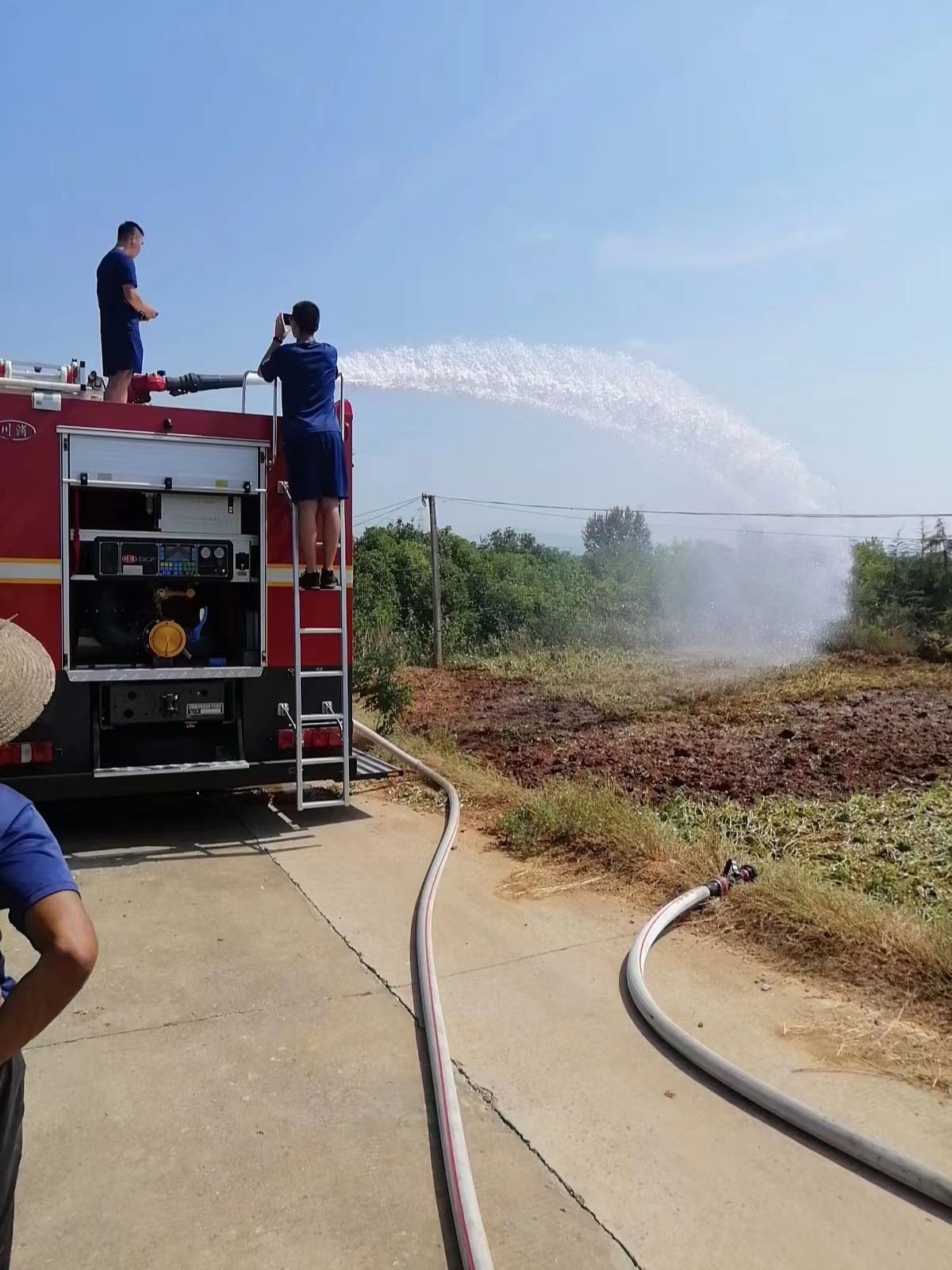 8月23号上午,在孝南区杨店镇凤翔社区大房砦湾,一辆消防车刚停稳,身着蓝色制服的消防员顾不上休息,在烈日下迅速铺设水带、装管、开阀,让水快速地流入村民杨宣国的花生地。