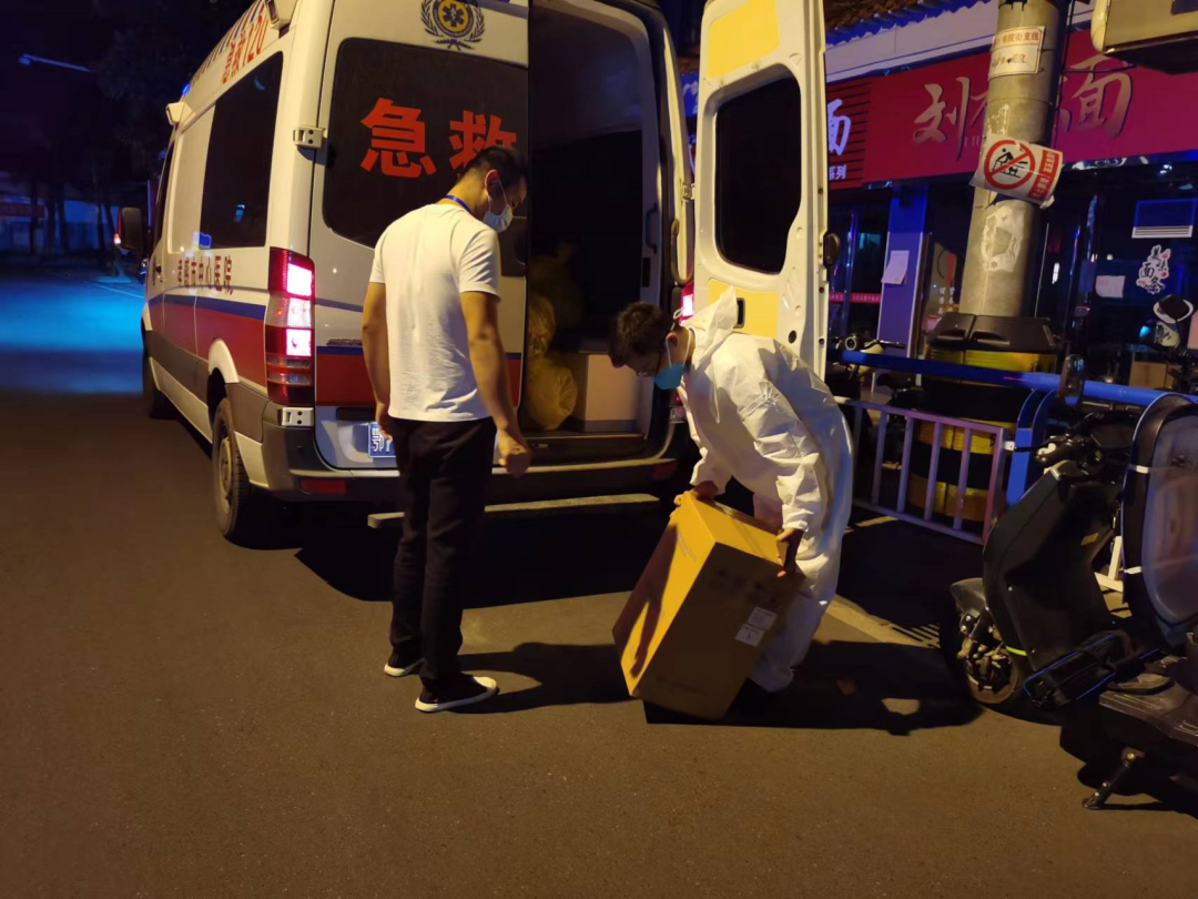 呼啸而过的救护车引起了大家的注意,正好救护车在前方不远处停了下来,大家赶紧飞驰过去,刘琦率先跑过去询问情况,得知是中心医院医疗车正在给各个社区核酸点配送采样物资。只见他们飞快的搬运物资交给社区人员,又飞快上车赶往下一个地点。
