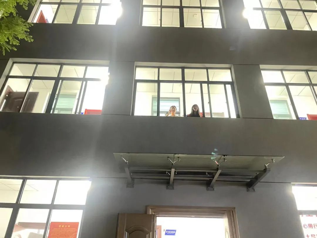 完成采访任务,回程已经接近十点了,办公楼依然灯火通明, 拐个弯走到融媒小院,就看到二楼的走廊上她们俩等着我们回来,远远地相视一笑,这是多少分散到各个社区下沉办公的工作人员羡慕的场景。虽然加班到很晚,分头各自行动,但总有一盏灯等着我们回来。