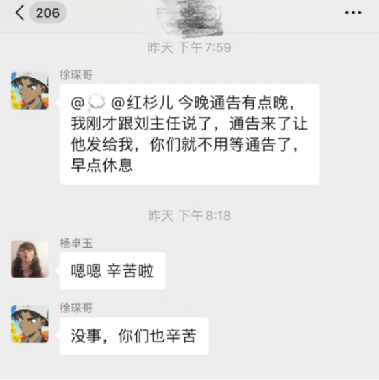 封控管理期间,他还是网课期间学校老师的得力助手,一边每天督导儿子认真完成网课,一边还要百忙之中协助学校老师开展家委工作。无论在工作还是生活中,他总是在需要牺牲小我的时候挺身而出,秉承着乐于奉献和敢于担当的初心为别人撑起一把伞。