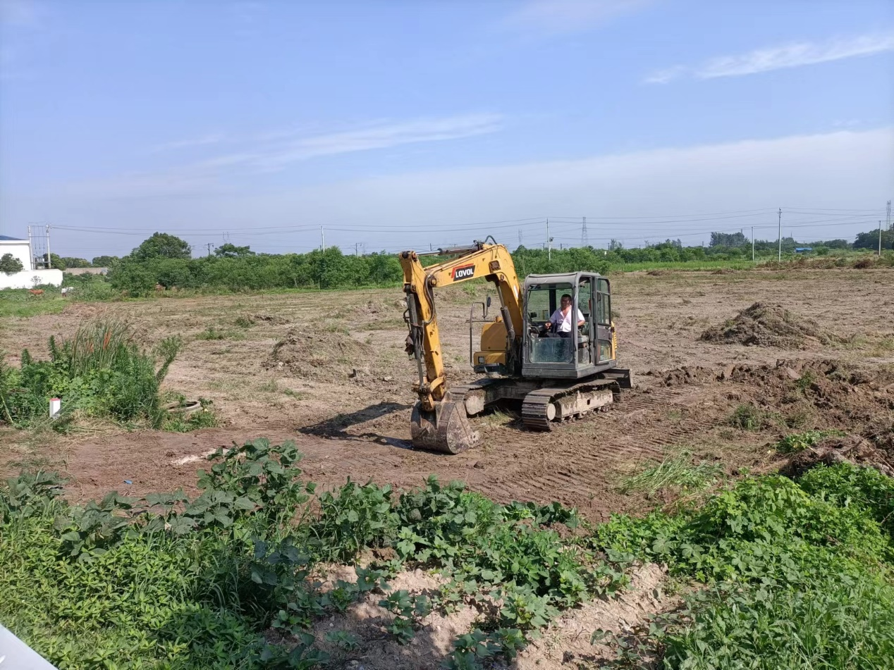 (图:推土机在平整田地)