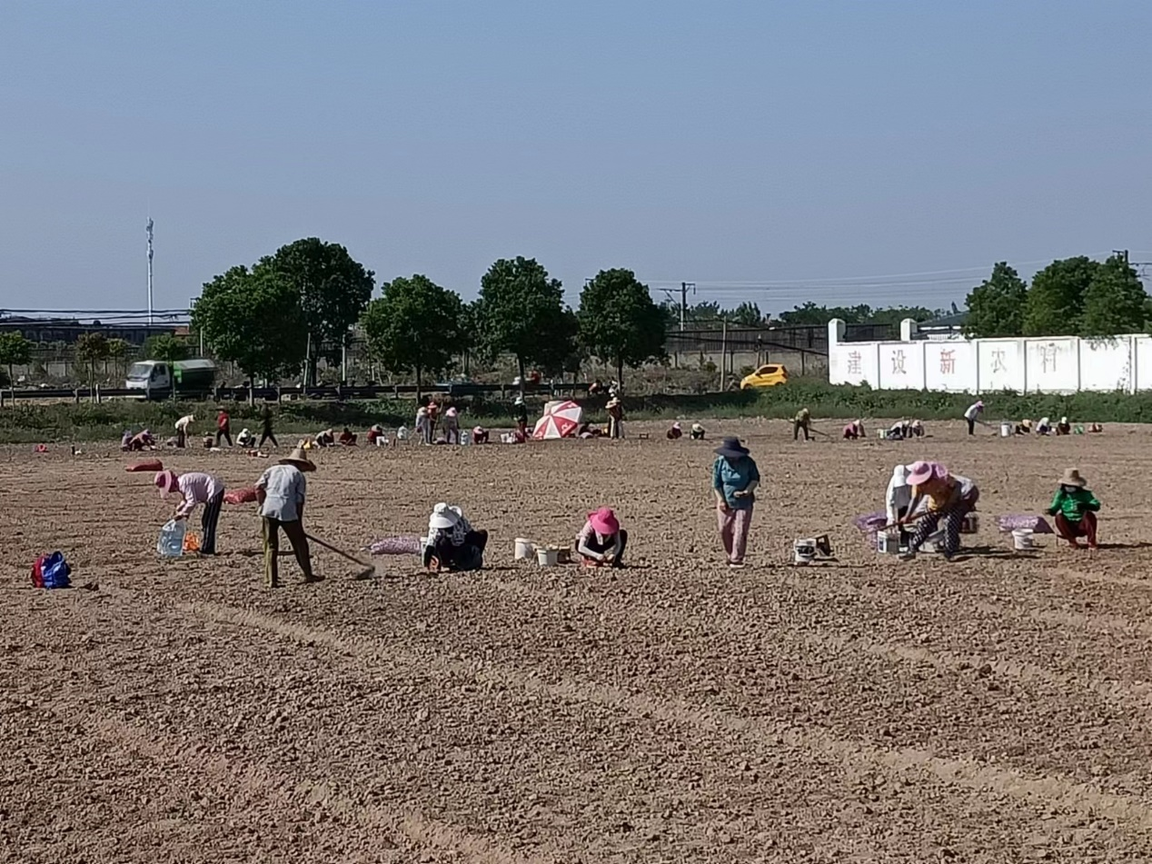 (图:农户正在田里播蒜种)
