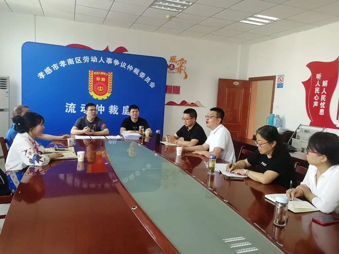 近日,孝南区劳动人事争议仲裁院“流动仲裁庭”首站走进孝南区东山头,在当地党委政府的支持下,联合信访办、司法所、人社基层调解中心多元一体,从源头化解劳资纠纷。在多方共同努力下,最终促使争议双方握手言和,并签订仲裁调解书,现场调处了一起10余人集体劳动争议案件。