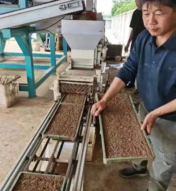 流水线育秧效率高,运作快,1小时可制作800个育秧盘,25盘秧即可栽种1亩地,不仅节省了育秧人工成本,还能保温保肥保水,节省20%以上的种子用量。