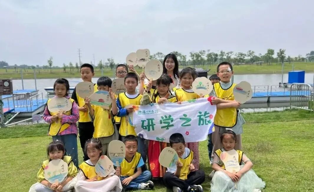 研学活动以母亲河为载体,让小朋友结合自己在游船上的所观所感,上岸后,在现场拿笔即兴作画,用手中稚嫩的画笔勾勒出一幅幅关于老澴河的生动形象,色彩鲜明、形式多样的画作都承载着孩子们对祖国大好河山的赞美,实现了“研、游、学”的完美融合。