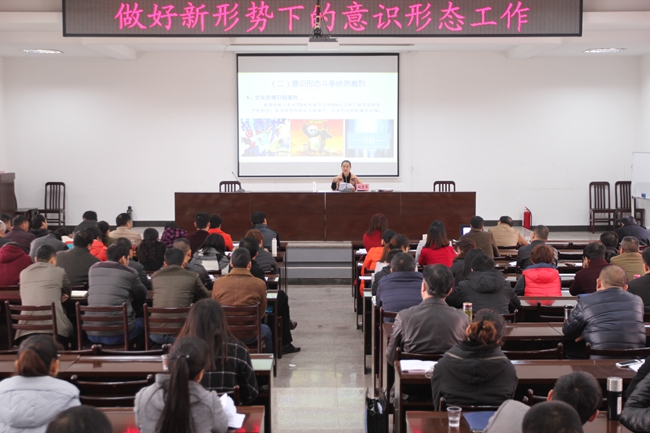 姚惠萍从什么是意识形态、当前意识形态领域的形势和牢牢把握意识形态工作的主导权三个方面,详细阐述了做好意识形态工作的极端重要性和紧迫性。姚惠萍强调,要以中国梦教育为核心,巩固理想信念,增强民族自信。要弘扬中华传统孝文化,培育和践行社会主义核心价值观。要以文化建设为抓手,凝魂聚气,固本强基。要树立大宣传理念,共建美丽精神家园。要全面落实各级党委(党组)意识形态工作责任制,切实担负起加强意识形态工作的主体责任;各个部门发挥职能作用履行好意识形态工作的双重责任;宣传部门担负起主管责任做好宣传思想文化工作;加强对意识形态工作责任制落实情况的督促检查问责;党员干部、共青团员都要主动亮剑,主动发声,不做沉默的多数,形成“党委统一领导、党政齐抓共管、宣传部门组织协调、有关部门分工负责”的工作格局,打赢意识形态这场争夺人心之仗。