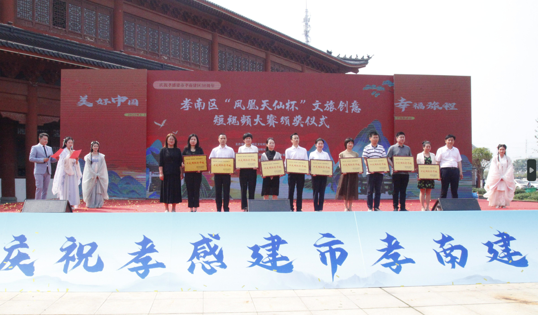 随后,孝南区隆重举行了“凤凰天仙杯”文旅创意短视频大赛颁奖仪式。活动现场对此次大赛的获奖短视频进行了展播。值得一提的是,本次大赛一等奖兼最佳制作奖获得者姚冬是一名地道的孝感小伙,他的短视频作品《镜头里的城市变迁》用今昔对比的叙事方式和镜头语言记录了这座城市的发展史。
