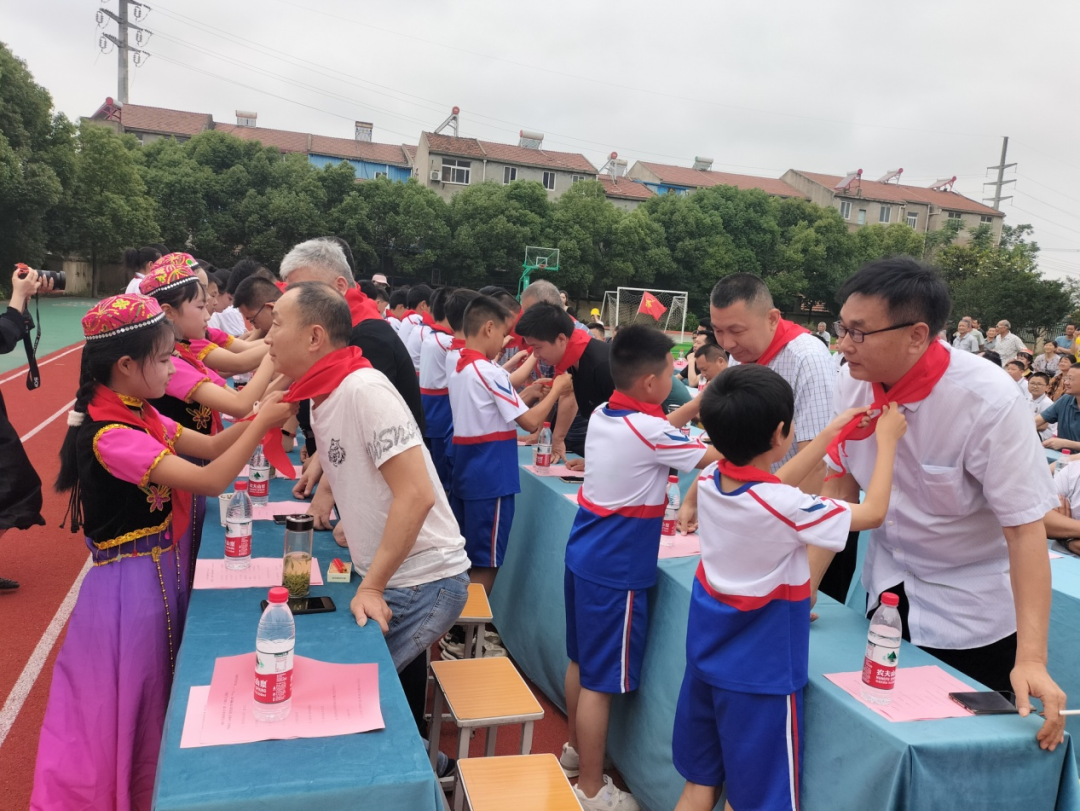 活动在该校少先队员与36位乡贤互戴红领巾中拉开帷幕,伴随着《中国少年先锋队队歌》的奏响,一年级学生的入队仪式也庄严的进行着。随后,由该校小学生和幼儿带来的舞蹈、朗诵、篮球操等15个节目轮番上演,台上小演员们倾心演出,台下观众们掌声不断,大家在喜庆的节日氛围中共同回味童年时光。