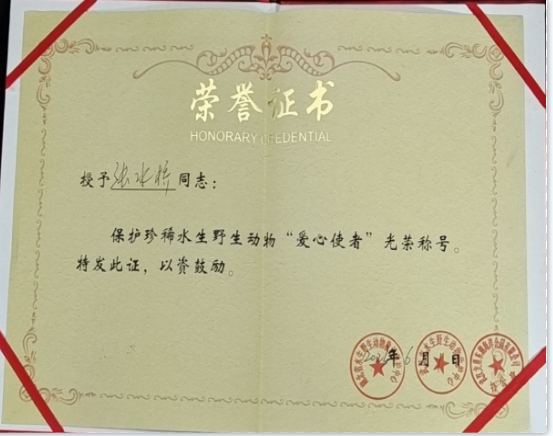 据介绍,娃娃鱼的生存环境要求非常苛刻,只有良好的生态环境才能生存,这充分说明我区具有良好的生态环境。还有就是对张水桥能主动无偿的将娃娃鱼交给农业综合执法大队,并得到成功救助的行为获得了由湖北省水生野生动物救护中心颁发的保护珍稀水生野生动物“爱心使者”光荣称号荣誉证书。由于孝南区农业综合执法大队加大了水生野生动物保护的宣传力度,从而推动了人民群众对保护水生野生动物的法律意识提高。