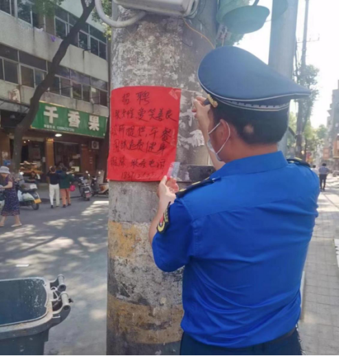 规范市场秩序。该大队新华中队重点对集贸市场外占道经营、车辆乱停乱放、违规张贴广告、游摊游贩进行治理,及时清扫路面垃圾,清除城市“牛皮癣”。同时,积极发挥城市治理引导作用,搞好宣传教育,督促和规范店家自觉做好“门前三包”,为市民营造干净、整洁、有序、文明的市场环境。