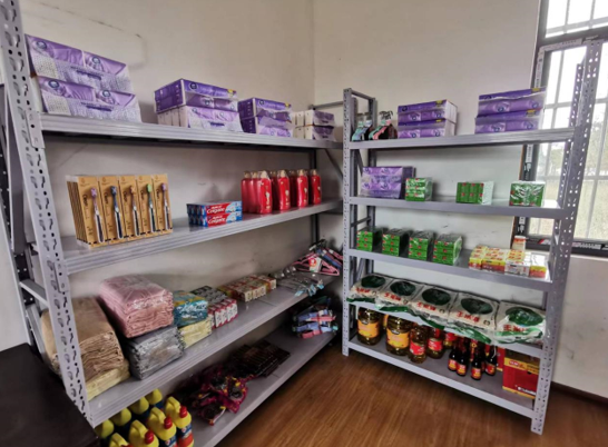 这是华光村在孝南区委宣传部和朋兴乡政府的支持下办起的第一家“积分超市”,面积虽然不大,货架上的物品却不少,米面油盐、牙膏牙刷、纸巾等各类生活用品一应俱全。与普通超市不同的是,这里的商品不能用钱买,只能积分兑换。在门口的外墙上贴着志愿服务积分兑换细则的告知牌,上面标注着兑换各类物资和服务所需的志愿服务积分,评分标准一目了然。