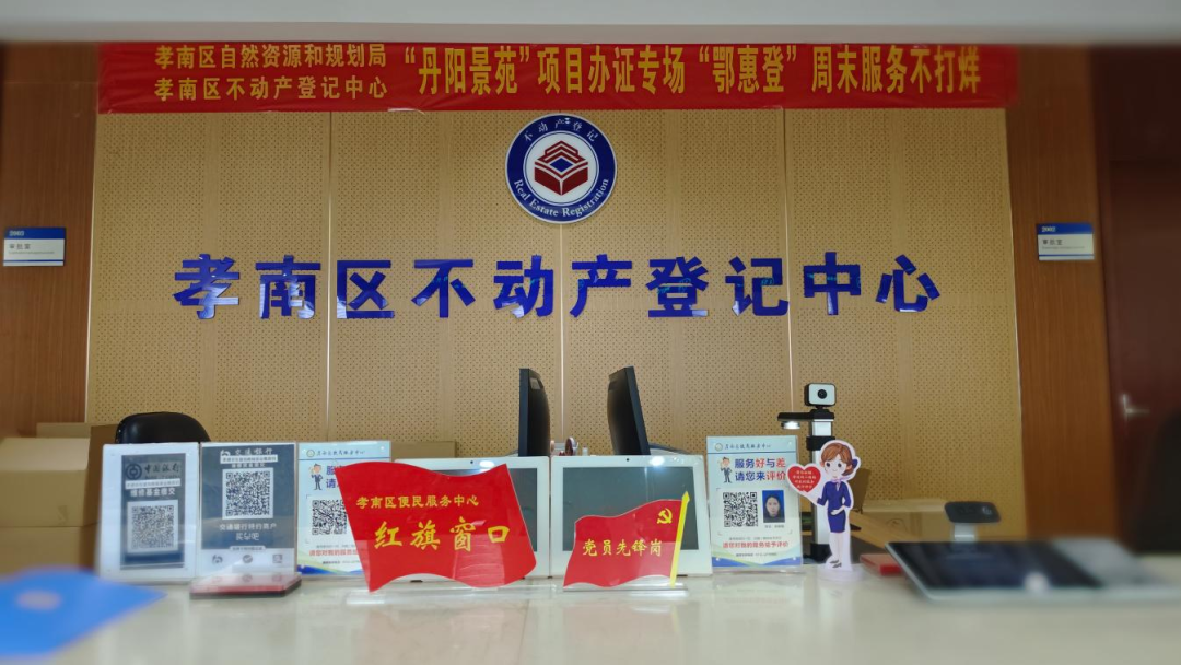 孝感市孝南区不动产登记中心在7月1日“建党节”开展“‘丹阳景苑’项目办证专场 ‘鄂惠登’周末服务解民忧”活动,全体工作人员利用周末2天时间,成功为该小区105户老龄居民办理了《不动产权证书》。