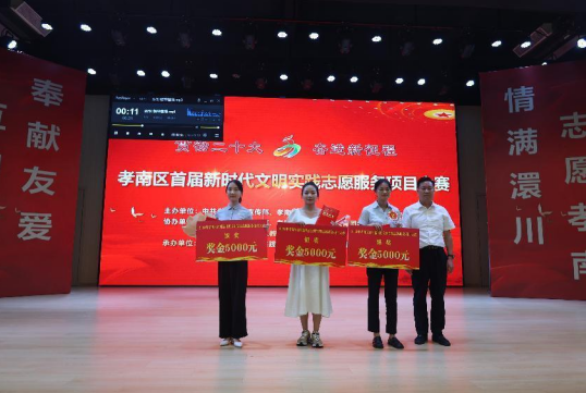 经评委现场综合评分,最终“小小讲解员 传承孝文化”“心手相牵 税伴成长”2个志愿服务项目荣获金奖;“‘衣旧’情深,爱心传递”“老班长来了”“敬老爱老 情暖夕阳”3个志愿服务项目荣获银奖;“共织五彩童心梦”“扫地爷爷 薪火相传”“劳动教育伴成长 志愿服务我先行”“‘睛’彩未来”“银龄乐幸福食堂”5个志愿服务项目荣获铜奖;肖港镇、新华街道、广场街道、孝南经济开发区、区卫健局、区教育局获得优秀组织奖;“情暖童心 护苗成长”“赋能新时代建筑工匠”等10个志愿服务项目获得优秀奖。