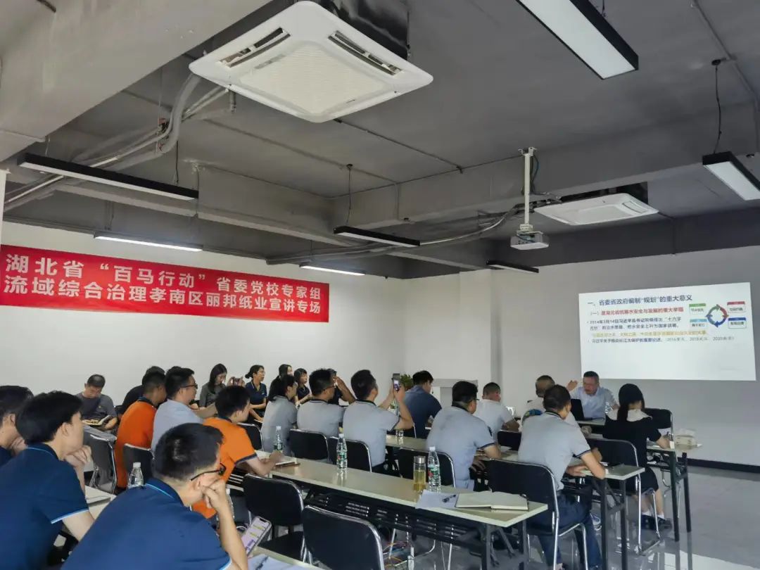 7月12日,湖北省“百马行动”省委党校专家组流域综合治理和共同缔造宣讲活动在湖北立邦纸业有限公司召开。