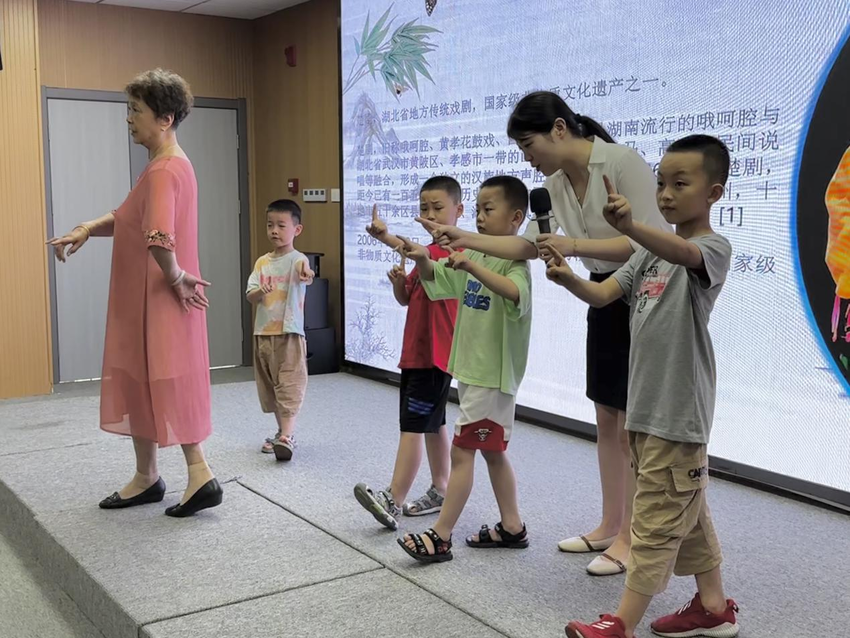 近日,湖北省实验楚剧团李伟英、涂宇两位戏曲名家在孝南区图书馆开展《非遗讲坛》少儿戏曲课堂,与孩子们面对面交流并现场教学。