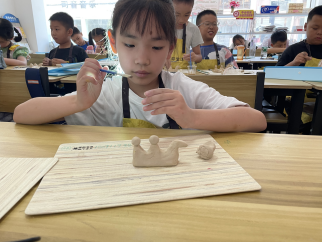 中山社区小朋友在老师指导下手工陶泥制作骆驼笔架