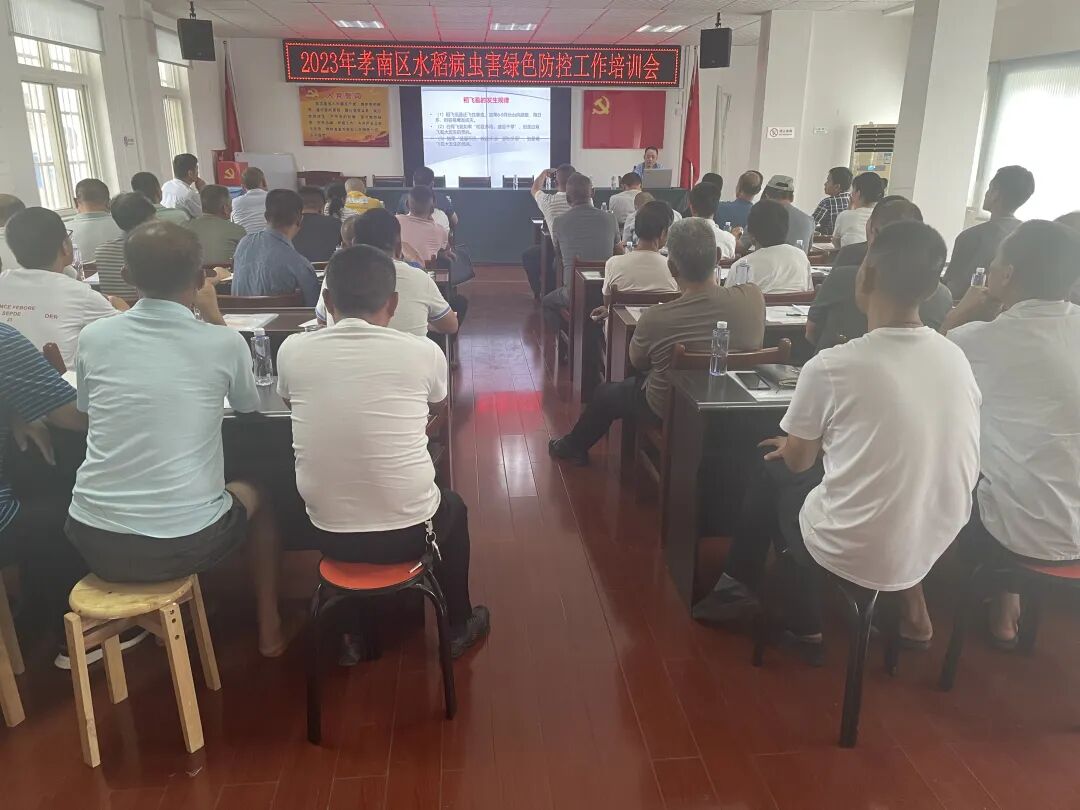 近日,孝南区植保站组织举办了一期2023年孝南区水稻病虫害绿色防控工作培训班,全区各乡镇农技中心主任、种植大户及植保技术人员等55人参加了培训,高级农艺师刘舜洲就水稻病虫害发生、发展、危害及防控深入浅出地作了细致的讲解,并对下一步的工作作了部署。