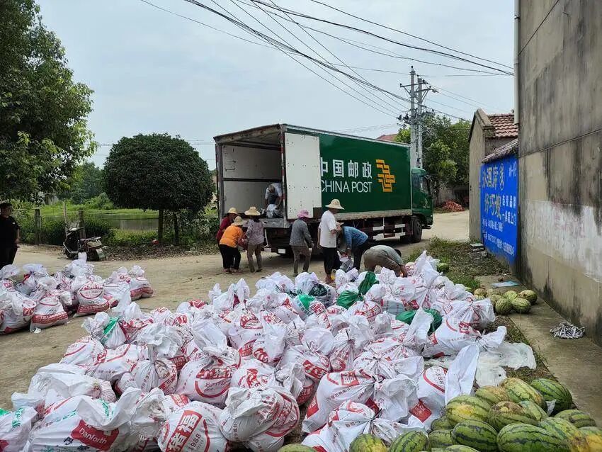 刘松清是杨店镇栖凤村刘家咀的一名监测户,因要照顾生病的妻子,无法外出务工,今年种植的西瓜面积大,但近期受天气影响,出现了销售不畅的问题。看着后面连续数日的阴雨天气预报,正当刘松清发愁之际,孝南区邮政分公司驻村工作队员吴宝云主动找到他,通过实地查看了解情况后,又到村内其他瓜农家走访,吴宝云面色凝重的回村和驻村队长胡春新及栖凤村书记刘国安商量,并向上级领导汇报相关情况,在取得孝南区邮政分公司主要负责人的同意下,积极联系爱心单位,帮助刘松清和其他三家瓜农,一共销售了一万八千斤西瓜。
