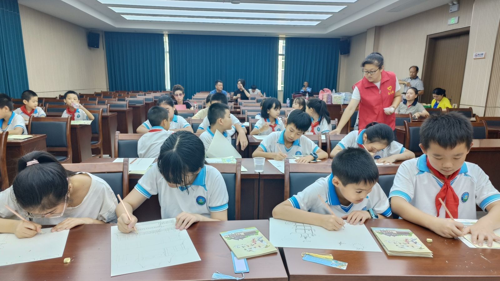 孝南区图书馆孙润之老师以“记忆中的老澴河之文昌阁”为主题给学生们上了一节生动有趣的文化课,讲解了孝感地区标志性建筑——文昌阁,指导学生们用桌上的画笔勾勒出文昌阁。小朋友们兴致高昂,在老师的引导下陆陆续续完成了自己的作品,赢得了现场工作人员及老师的称赞,也从绘画中深刻感受到了孝感的“文化味”。