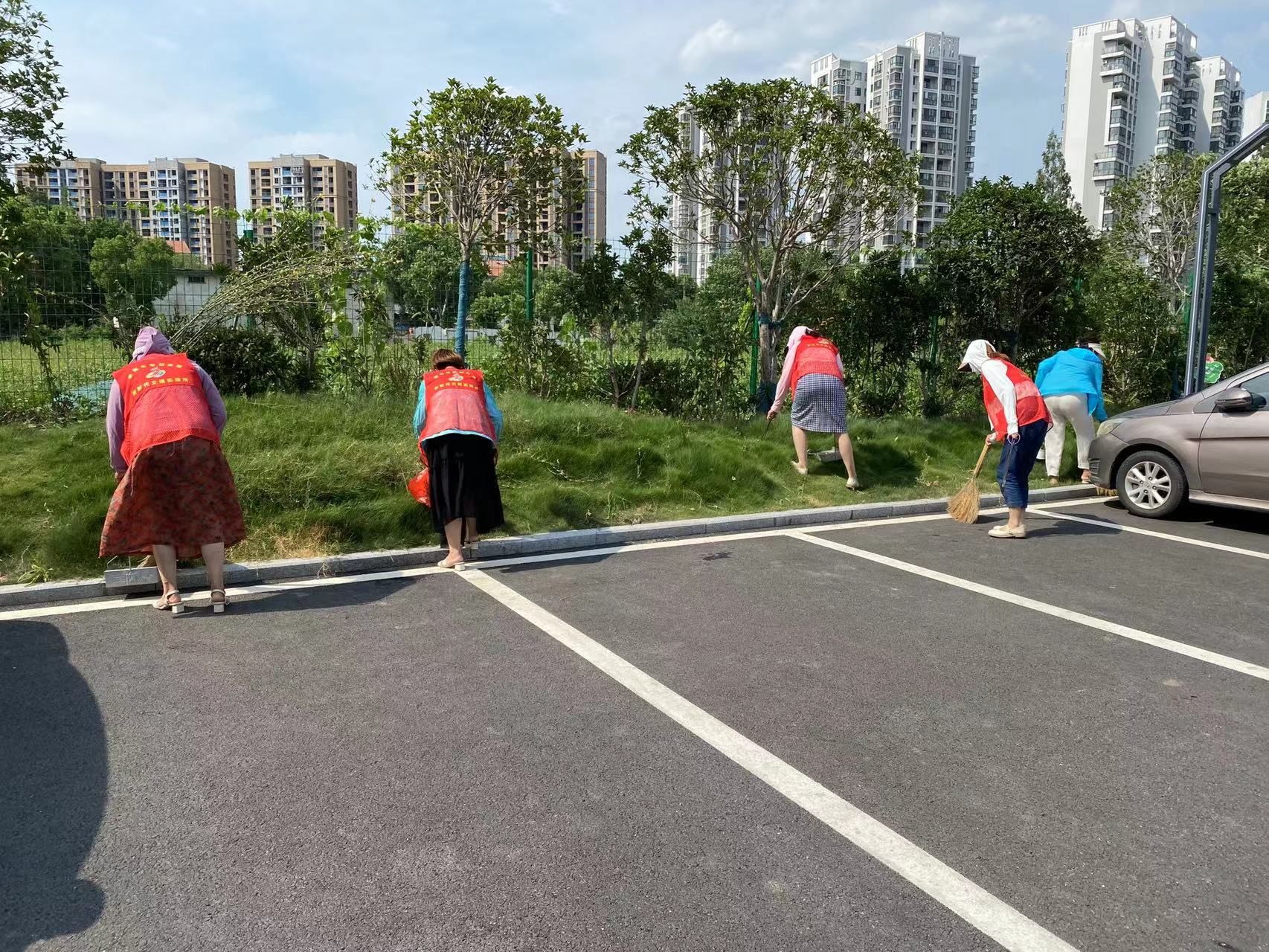 最后,巾帼志愿者和居民们拿着工具和垃圾袋,清除了小区路边和人行道上的杂草,并将可回收物、有害垃圾和普通垃圾进行分类装好,确保社区居住环境干净整洁。