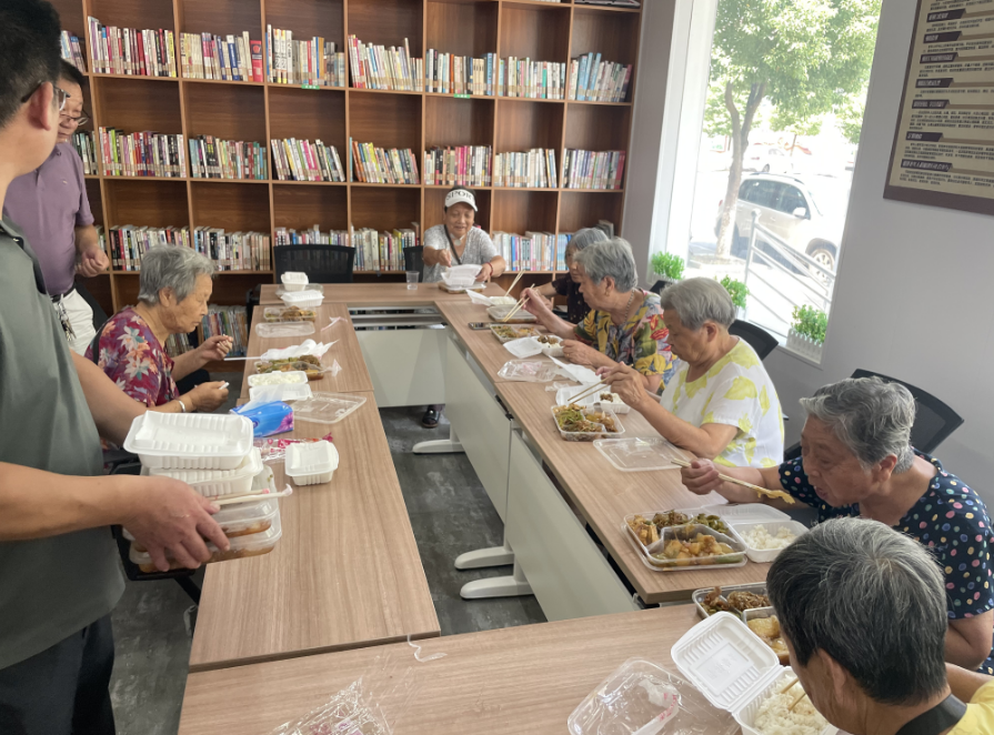 在工人之家居家养老服务中心助餐点用餐的李奶奶高兴地说到 :“现在的日子是越来越甜,越活越有滋味,社区为我们老年人打造了居家养老活动中心,有人组织我们开展娱乐活动了,原先单调无聊的晚年生活也有了生活的乐趣更加充实,现在还能吃上“可口菜、热乎饭,价格也是相当实惠。” “现在天气炎热,老两口也不想在家开火做饭,这里离家近,菜品也丰富,我也过来吃饭,”家住对面小区的张阿姨说。
