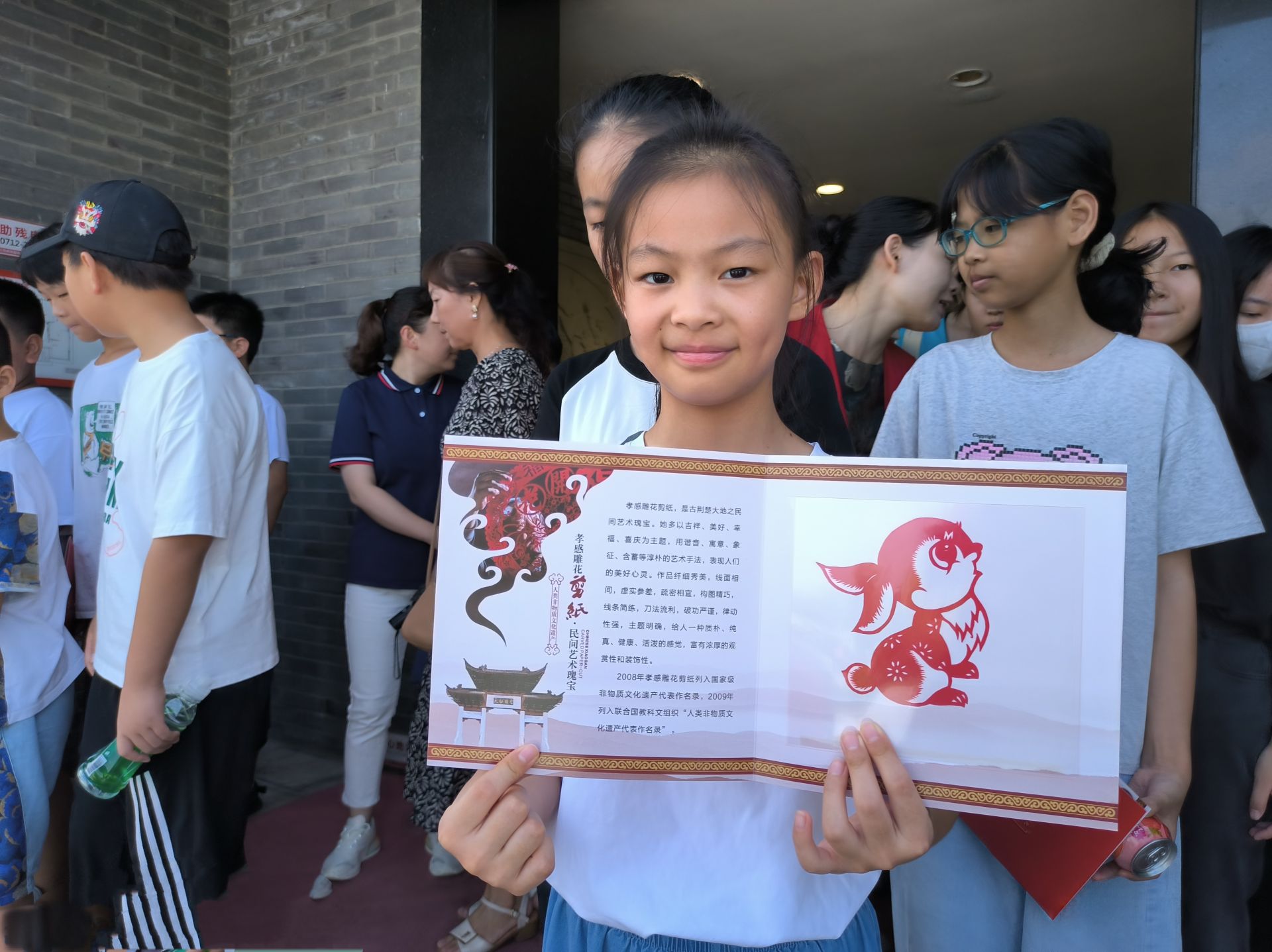 在参观展示厅的最后,孩子们聚集在互动答题处,纷纷参与答题互动,检验参观学习成果。“我刚刚答题得到了92分,这个孝感雕花剪纸奖品很漂亮,回家我要好好收藏起来。”来自埠镇村的徐熙媛同学拿着互动答题奖品开心说道。