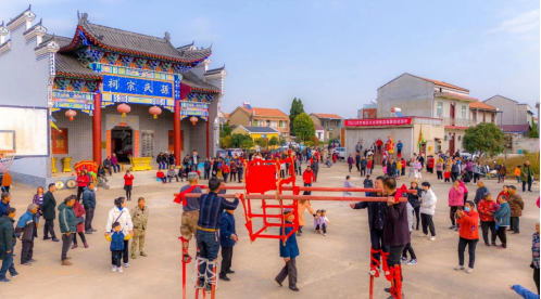 杨店高跷是孝感传统民俗文化活动之一,尤其是孙家大湾的高跷更是具有代表性。每年正月十三午饭之后,会有领头人鸣锣示意,全村人到村中心广场集合,踩高跷的艺人身着五彩斑斓的戏服,挥舞着彩旗,演奏着锣鼓,沿着湾里转一圈去给每家每户拜年,每到一家,他们都会献上一段精彩的表演,祝福主人新的一年平安、健康、幸福。那场景别提多热闹了!