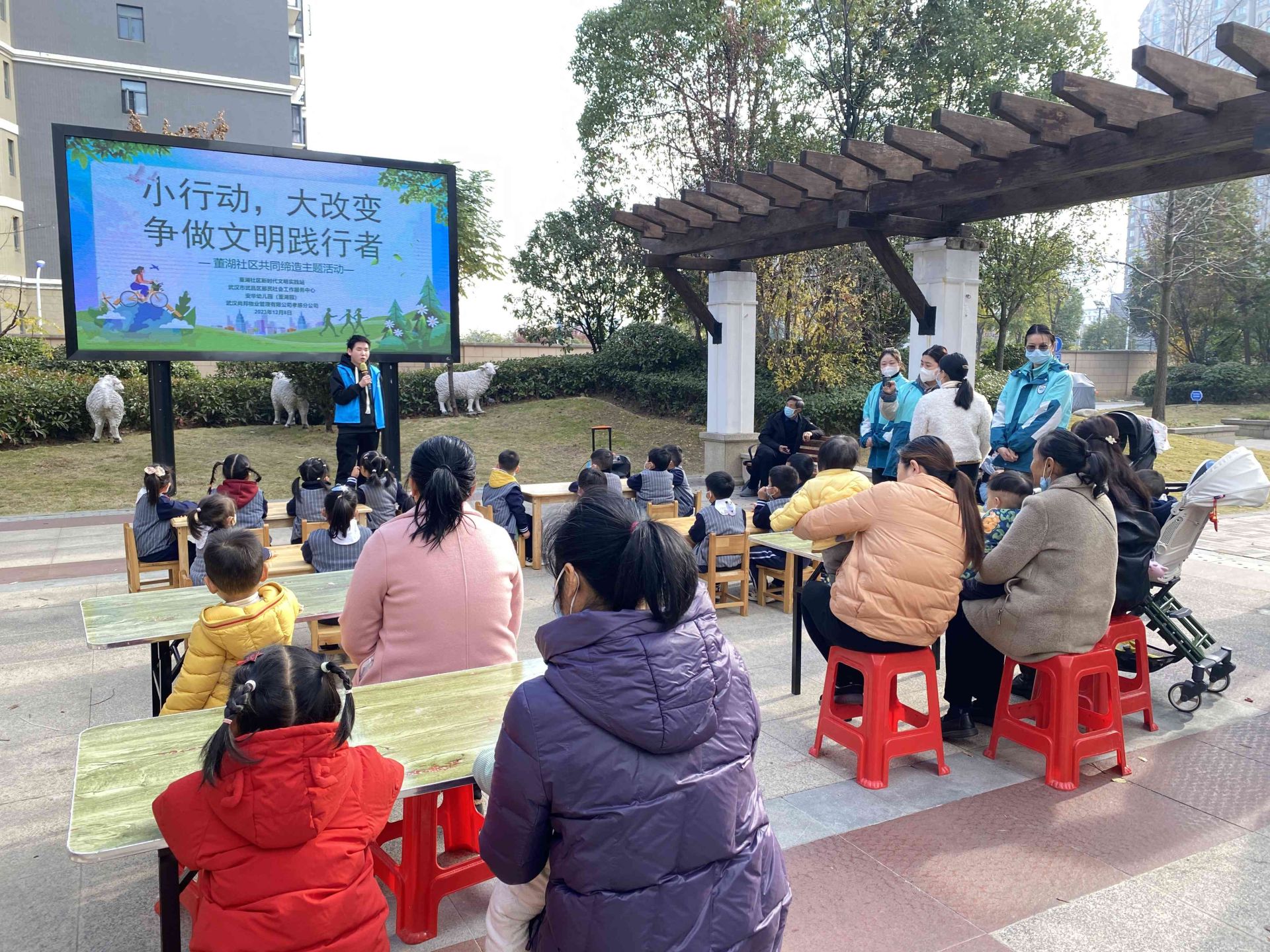 为深入推进全国文明城市创建工作,进一步加强小区管理、规范电动车停放,营造文明、和谐、安全的小区环境,12月8日,湖北省孝感市孝南开发区董湖社区特联合武汉郦民社工、武汉尚邦物业管理有限公司孝感分公司、安华幼儿园(董湖园)共同开展“小行动,大改变,争做文明践行者”董湖社区共同打造主题活动,引导小区居民从小处做起,从自身做起,助力小区电动车文明归位。