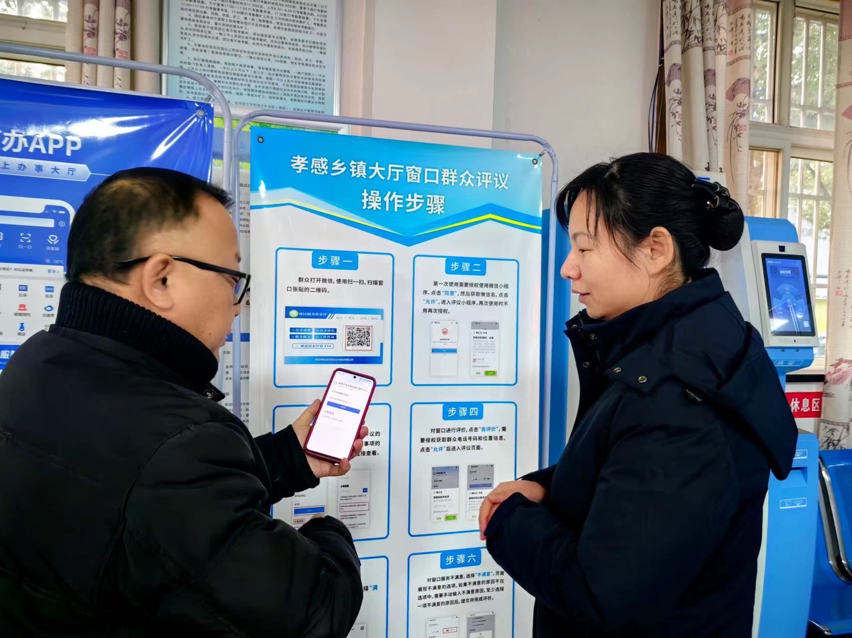 “您好!您的医保业务已经办好,请扫码对我们的服务作出评价。”湖北省孝感市孝南区新铺镇便民服务中心综合窗口工作人员肖尧正引导群众通过扫码参与“群众评”“满意、满意,你们的服务太好了,不仅帮我办理了医保卡,还指导我怎么在线操作缴纳医疗保险。之前我的户籍在外地,回来一直缴不了,你们真是给我解决了大问题”,刚办理完业务的鲁先生一边扫码评价,一边连声称赞。