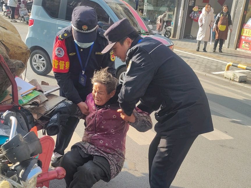 12月13日,湖北省孝感市孝南区城市管理执法局综合执法大队一中队在日常巡查途中遇到一起交通事故。城管队员快速反应、伸出援手,与路过群众携手助力,帮助老人脱险。