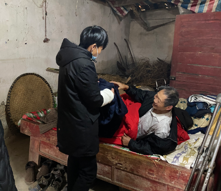 “感谢你们送来的棉被,经常来看我们,让我们心里好暖和。”湖北省孝感市孝南区肖港镇杨河村的一位孤寡老人紧紧握着志愿者的手,感激地说道。