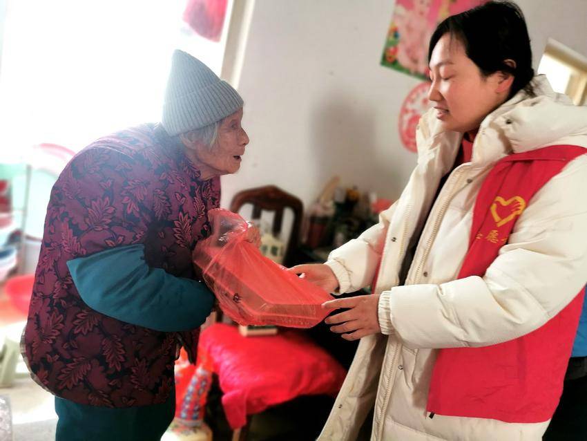 活动开始前,社工先给志愿者们分工,并介绍此次活动流程。紧接着志愿者们就开始忙碌起来。洗菜、切菜、调馅,动作麻利迅速,一切准备就绪后,包饺子正式开始。一群“红马甲”围坐成圈,捏的捏、放的放,一会儿工夫就摆满了桌面。社工和志愿者将饺子打包好,并带上公益捐赠的爱心棉服,来到社区五保户和独居老人家中,为他们送去爱心饺子和爱心棉衣。“感谢孩子们,感谢社区和政府,总是记得我,又是送吃的又是送穿的,让我这个100岁的老太婆享受到晚年幸福”独居老人李婆婆激动的说。