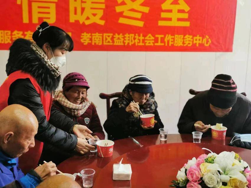 冬至是二十四节气中一个重要的节气,也是中华民族的一个传统节日,为弘扬中国传统节日文化,丰富社区服务的内涵,12月22日,湖北省孝感市孝南区民政局、孝南经济开发区七一社区、湖北一辰汉迪汽车销售服务有限公司联合孝南区益邦社会工作服务中心开展了“爱心饺子 情暖冬至”活动。