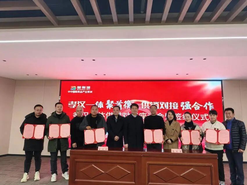区领导指出,首衡城作为全国一级水果批发市场,今天邀请到了来自武汉的30多名团长,既是打通武汉社区团购市场和市民“最后一公里”的服务商,也是畅通整个市场的毛细血管和神经末梢。孝感毗邻武汉,市场巨大,也是首衡城当初选址的重要锚点,今天在首衡城召开孝汉一体供需对接再添彩座谈会暨签约仪式,对于做好武汉市场的供需对接及打通、整合供应链至关重要,对于首衡城与合作的企业做大做强也至关重要,相信通过此次合作一定会迎来更好的发展机会。孝南区委、区政府也一定会全力以赴,不遗余力将首衡城建设好,服务好,保障好华中地区及武汉的“米袋子”“菜篮子”“果盘子”,开展好供需对接活动,搭建资源对接、区域互补、协同发展平台,希望企业充分发挥各自优势,更好地助力产品销售,在供需对接中达成所愿,实现互利互惠、合作共赢。