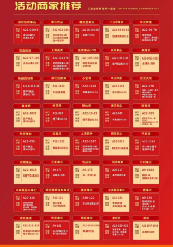 百鑫甄选全场水果8.5折、海川水果8.9折、湖北龙顺祥泰果业火龙果买10箱送1箱、佳成果品公司网红零食批发全场9折、双顺果品车厘子买1箱减50元等等,并且,凡是在孝感首衡城进口水果区采购500元以上的,可到展示中心领取水果礼盒一份(每日限100份,每人每天限领1份)真的是精彩不断、优惠不断。