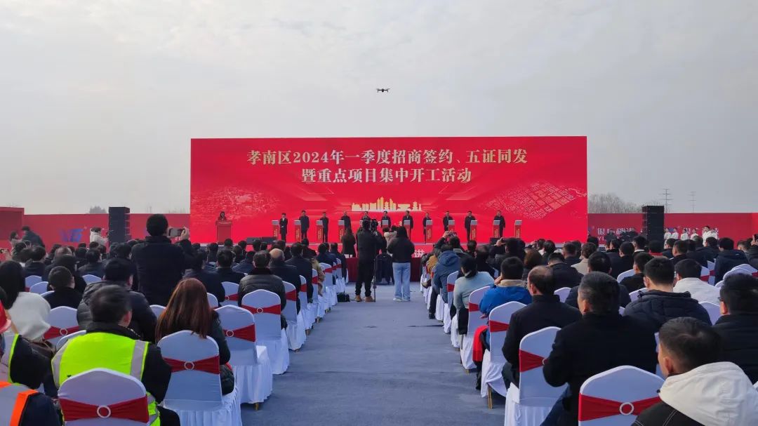 1月6日上午,孝南区2024年一季度招商签约、“五证同发”暨重点项目集中开工活动在湖北银广印务项目现场盛大举行。率先拉开了全省一季度招商签约、五证同发和重点项目集中开工活动的序幕,当天一次性发证数量、总投资也创新年全市之最,堪称全省优化营商环境典范。孝南区委书记夏齐勇出席活动并宣布项目集中开工。