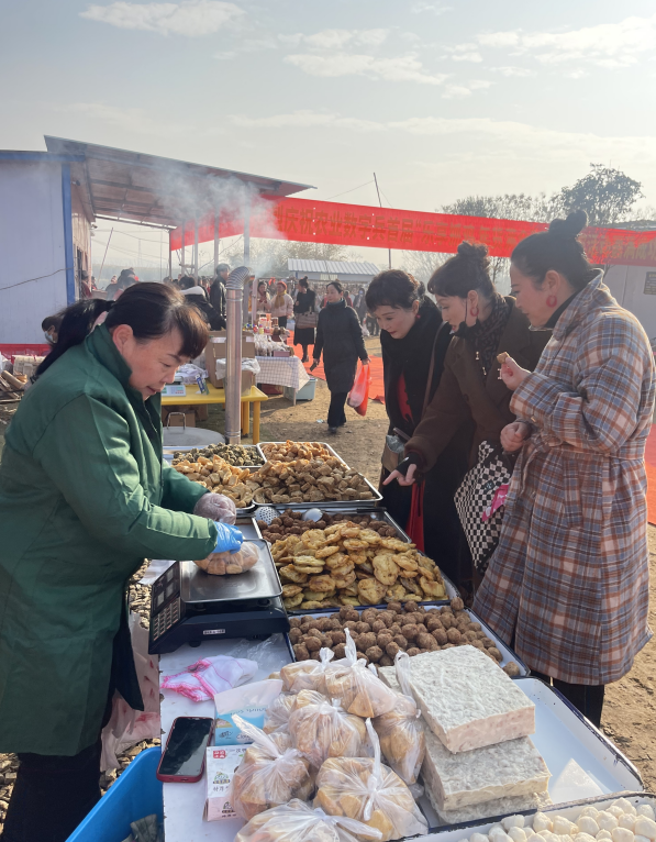 活动现场人头攒动,热闹非凡,琳琅满目的土特产,为游客朋友们带来喜庆愉悦的“赶集”体验。年货节展销现场汇聚了当地特色的茶叶、土鸡蛋、土猪肉、家禽、新鲜果蔬等多种特色农副产品。