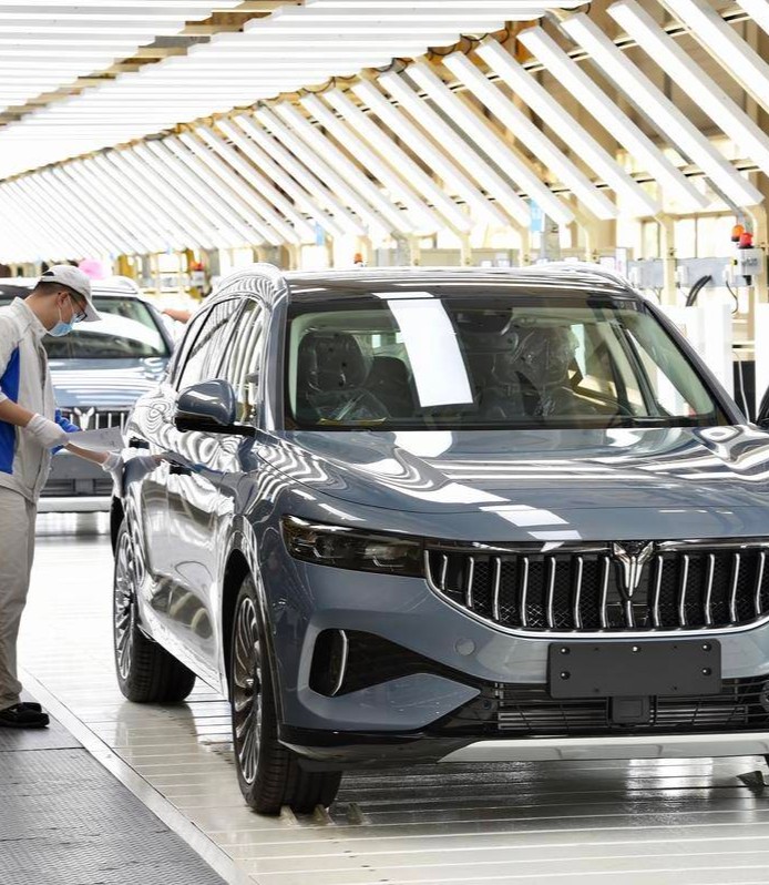 一辆辆岚图FREE新能源汽车陆续从这座工业4.0标准工厂诞生。(湖北日报全媒记者 李溪 摄)