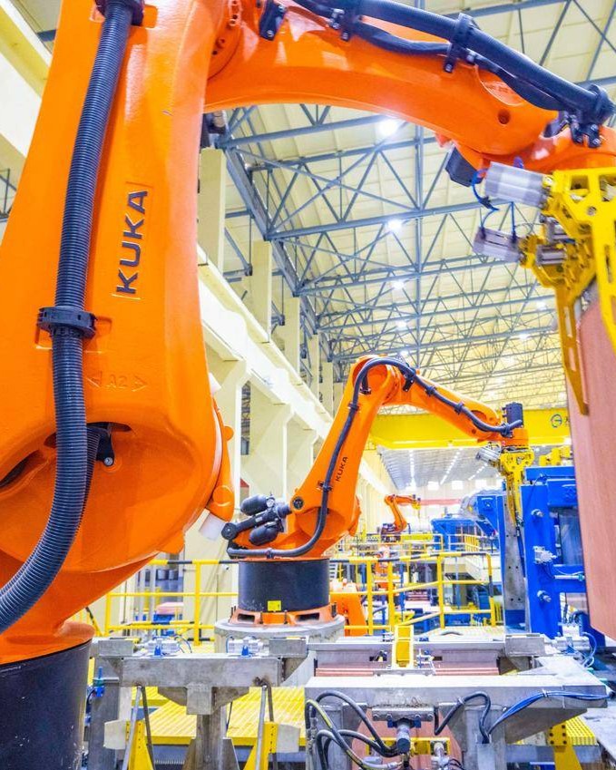 弘盛铜业智能工厂,机械臂忙碌挥舞。(湖北日报全媒记者 薛婷 摄)