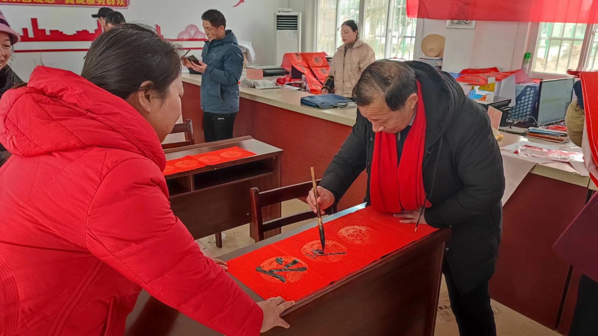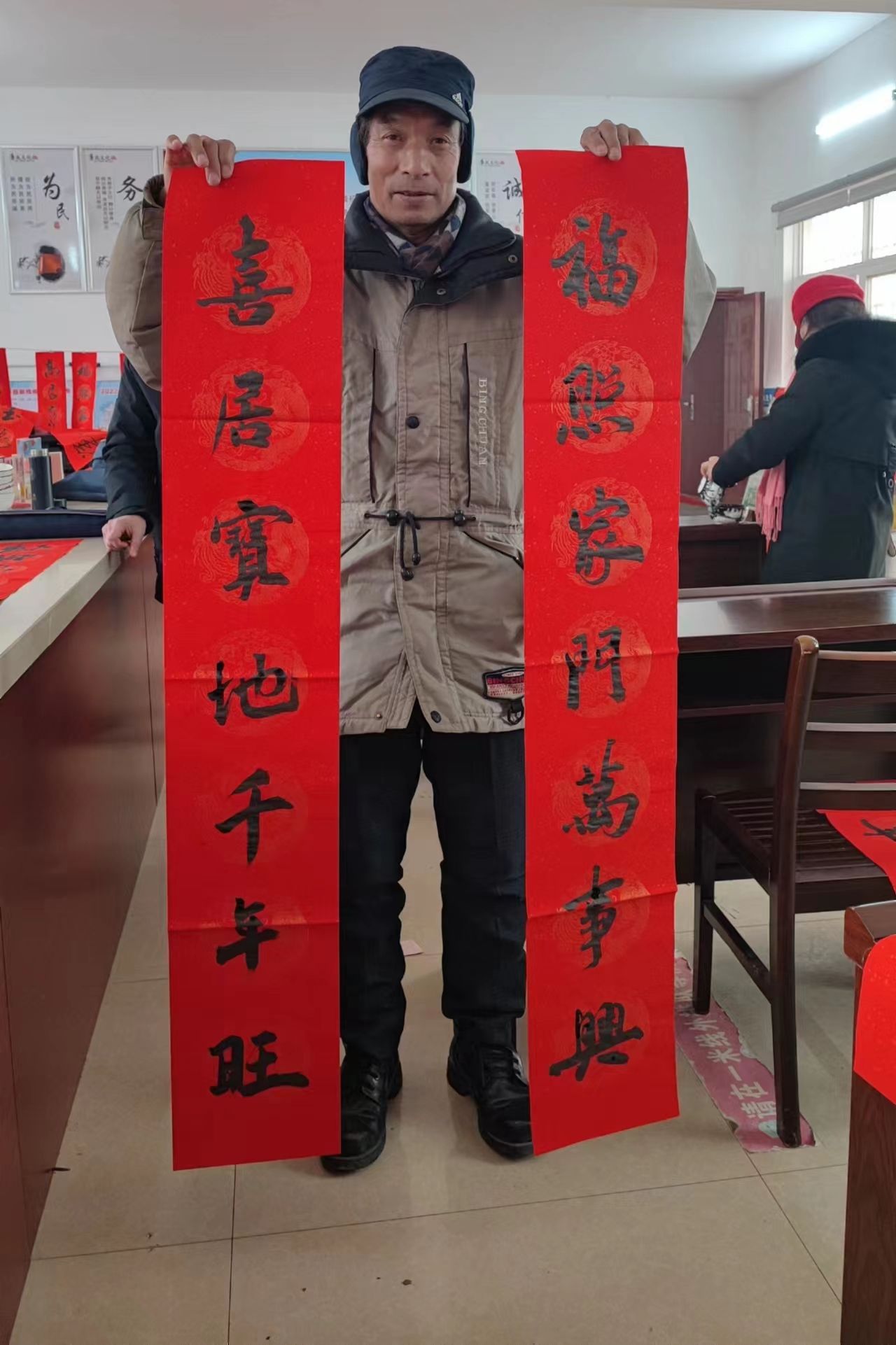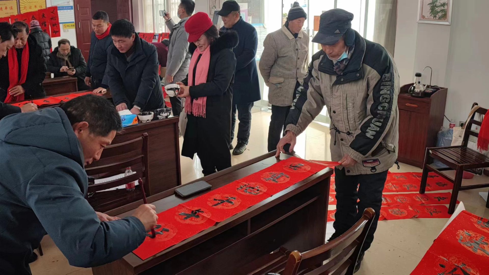 “我们书法家都是自带笔墨和纸张,写好春联免费送给村民!”据现场负责人介绍,此次活动由孝南区老促会组织,是其“春联送革命老区”系列活动之一,他们还将在各村举办类似活动,将书香文化直接送到手中。据统计,当天共有10位书法家及书法爱好者冒着严寒来到现场,累计向村民赠送220余副春联,为村民送上满满的“文化年货”。