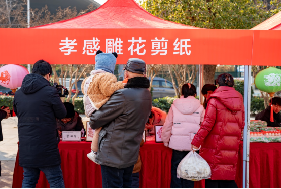孝感雕花剪纸、锡器制作、麦秆画等作品透出浓浓的传统年味,承载着中华民族的独特记忆与风俗。孝感雕花剪纸项目国家级非遗代表性传承人管丽芳现场雕刻的作品栩栩如生,展现了精湛的技艺,吸引大批群众驻足观赏。