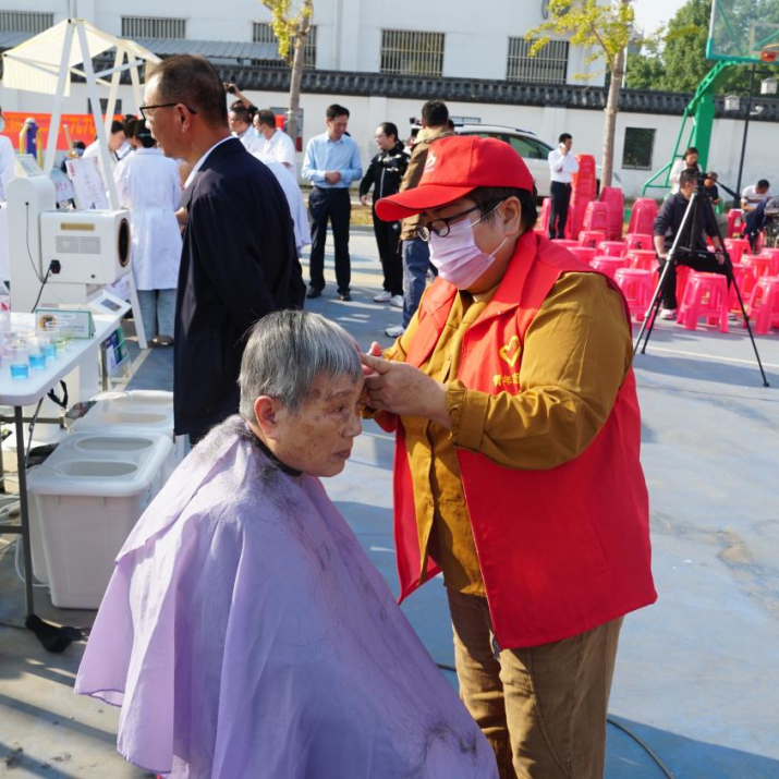 在义诊摊位前,医务人员认真接待每一位前来咨询的老人,免费为他们测量血压、血糖,提供健康咨询和理疗服务,理发志愿者们则根据老人们的个人喜好和要求,为他们精心修剪头发,让他们焕然一新。趣味套圈游戏更是吸引了众多老年人的参与,大家纷纷排队尝试,享受着游戏带来的乐趣和成就感。