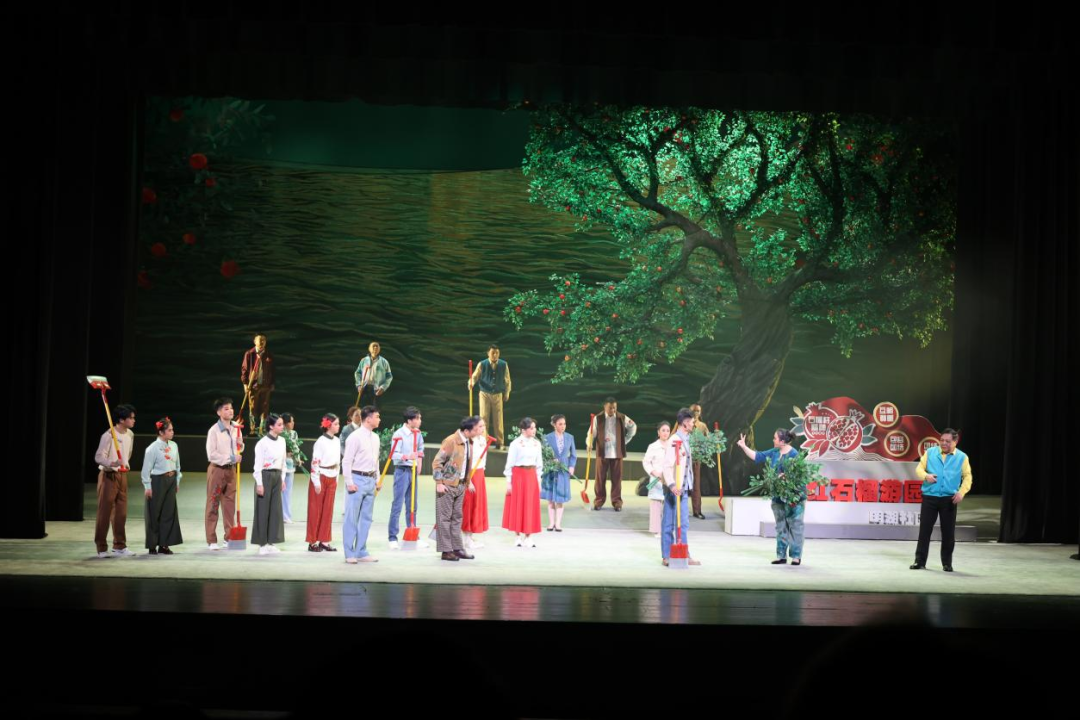 值得一提的是,《澴河岸边石榴红》取材于现实生活,将普通百姓的故事搬上舞台,以此传达出积极向上、充满正能量的价值观。通过细腻的人物刻画与情节铺陈,展现了人与人之间真挚的情感纽带,以及在社会变革中个体成长与集体进步的双向互动,充分体现了“红石榴精神”,即心连心、手牵手共创美好生活的精神追求。