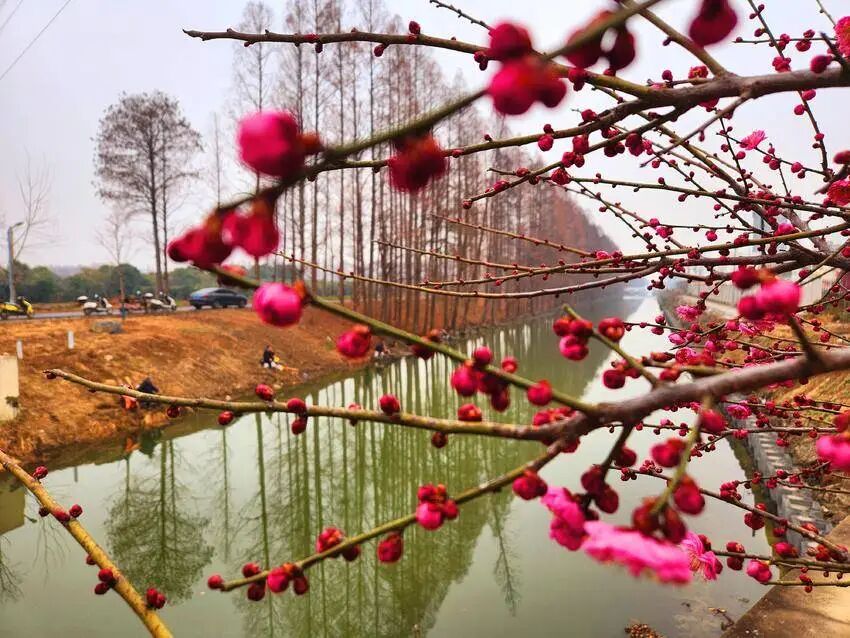目前,朱湖4万亩高标准糯稻生产基地,已是“田成方、树成林、渠相通、路相连、旱能灌、涝能排”,农田整齐划一、连绵成片,郁郁葱葱的小麦、油菜长势正好,就连渠道两边的梅花也开得格外红艳。