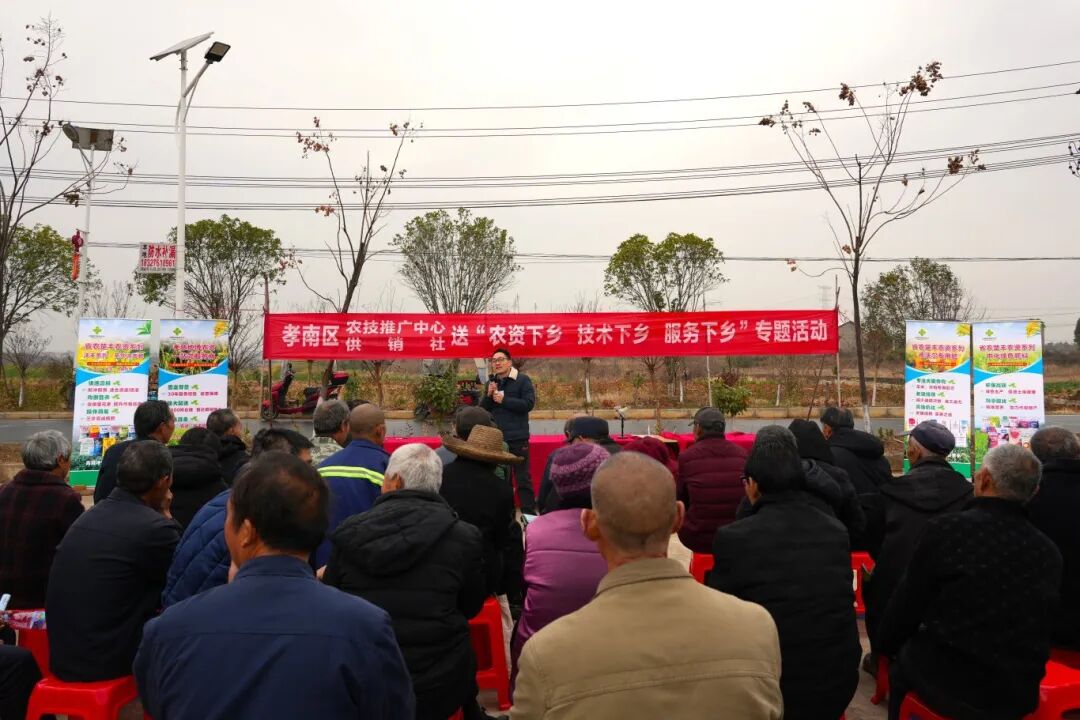 近日,由孝南区供销社、孝南区农业技术推广中心联合主办的“送农资、送技术、送服务”三送活动在杨店镇刘砦村村委会广场举行。活动通过“政策宣讲+农资直供+技术培训”的一体化服务模式,为当地80余户种植户送上春耕“及时雨”。