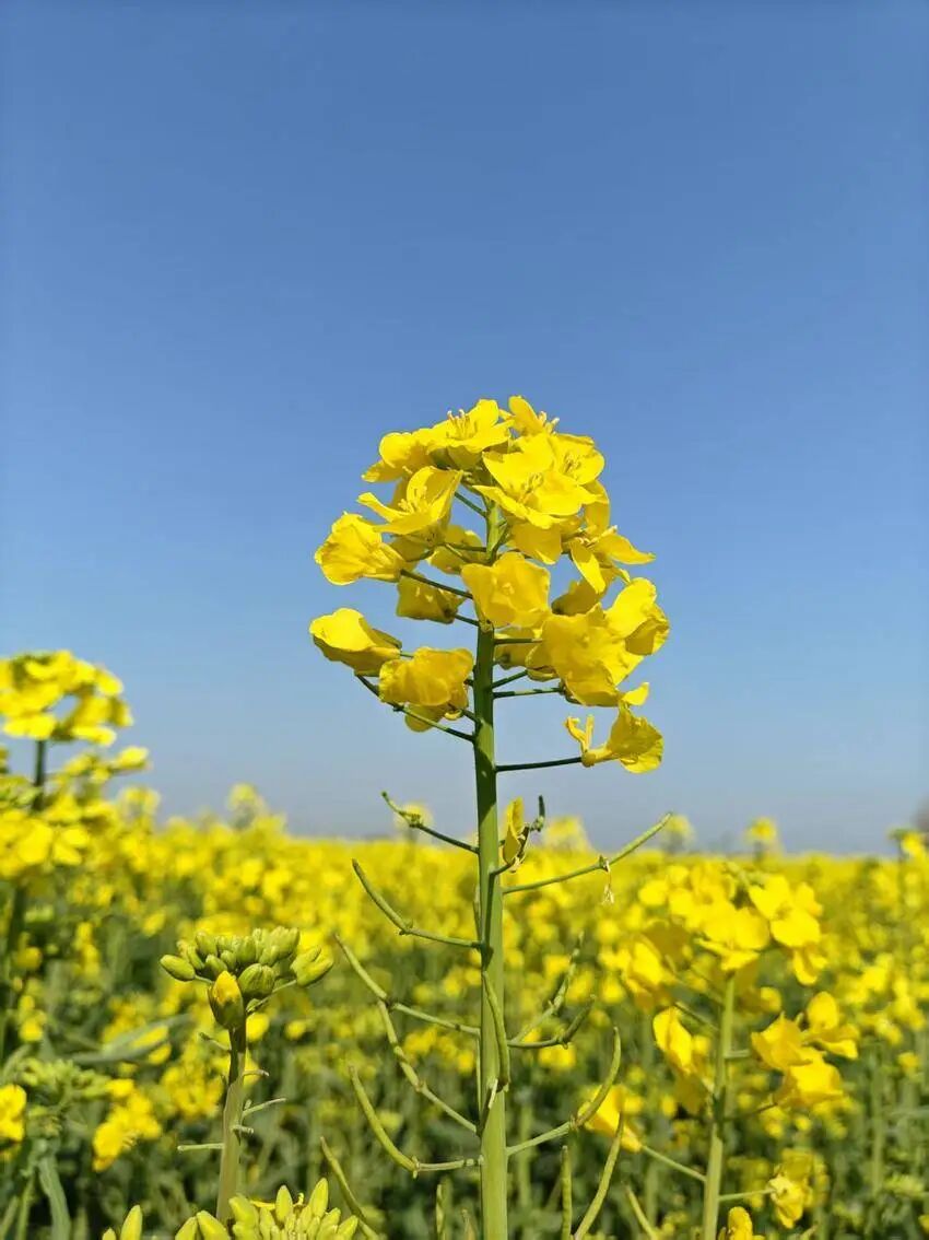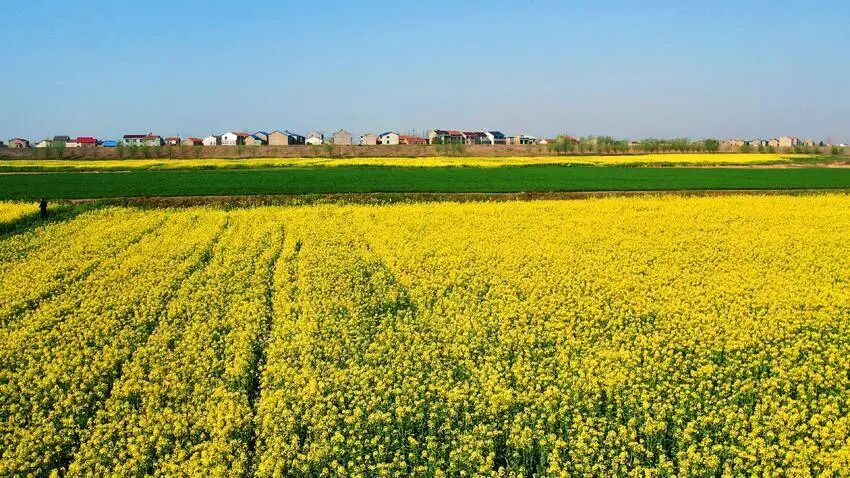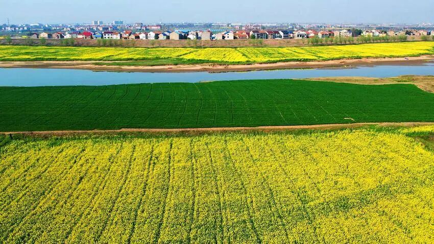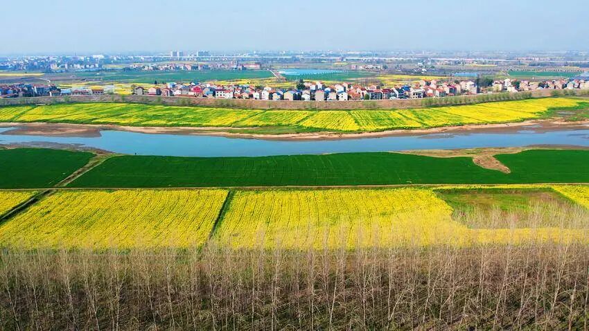 不远处,澴河的河水澄澈碧绿,缓缓流淌。平静的河面宛如一面巨大的镜子,将金黄的油菜花、湛蓝的天空、洁白的云朵统统收入其中,光影交错,如梦似幻。微风轻拂,油菜花摇曳生姿,和着潺潺的流水声,演奏出一曲春日的乐章。