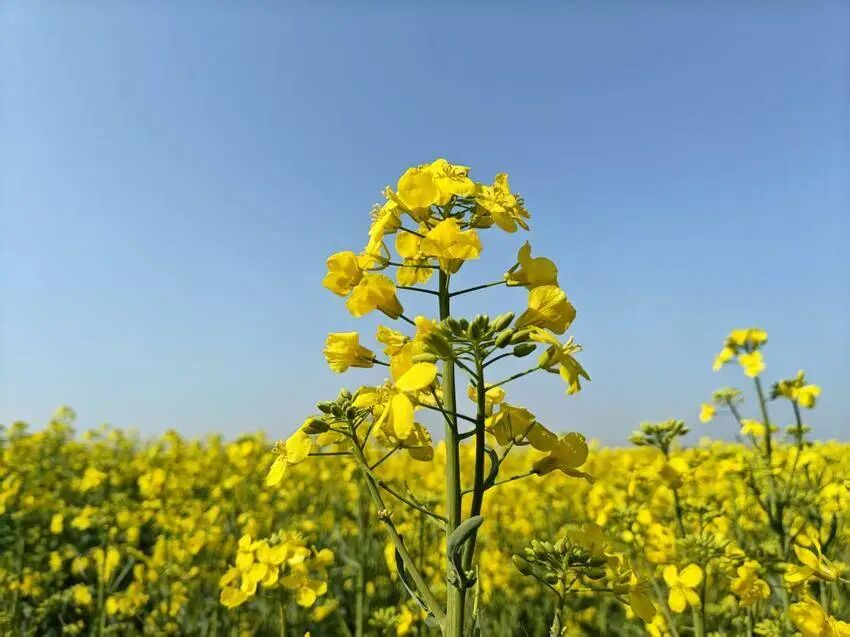 春日的暖风吹过孝南区澴河岸边,唤醒了千余亩油菜花田。一时间,这里成了金黄的世界,每一朵油菜花都鼓足了劲儿,尽情舒展着四片嫩黄的花瓣,向着暖阳,热烈绽放。它们密密麻麻地挤在一起,形成一片耀眼的金色海洋,每一道花浪都涌动着春天的活力。